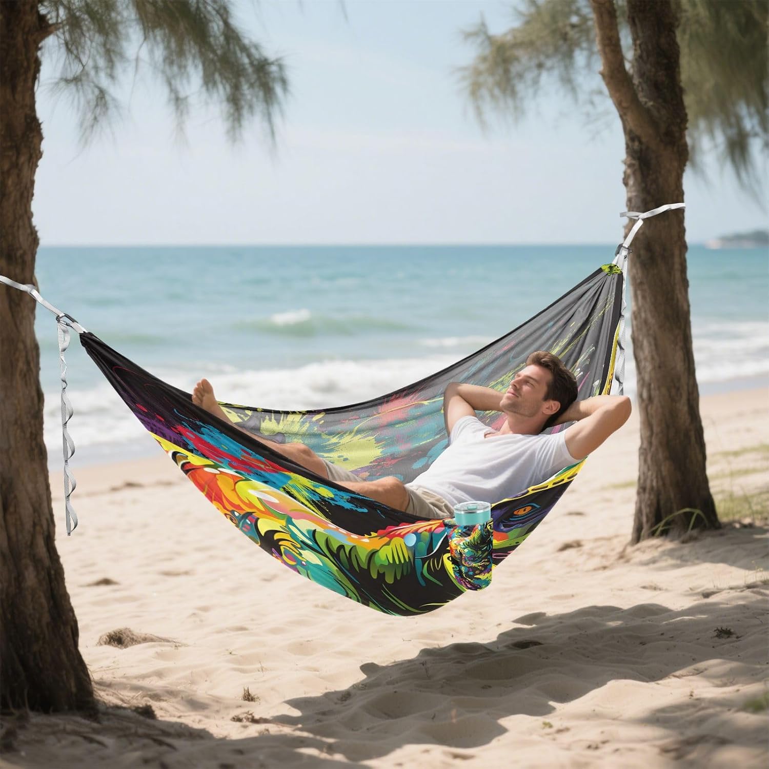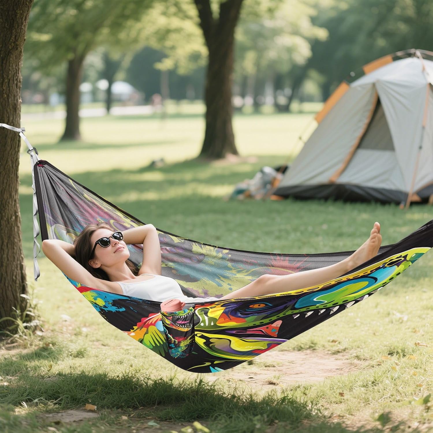 Reliable Outdoor Relaxation This practical hammock delivers comfort and convenience for outdoor enthusiasts using quality materials and thoughtful engineering. Technical Details Material: 100% polyester (210T taffeta body; 600D polyester straps) Hardware: Aluminum carabiners Load Capacity: 500 lbs (227 kg) Packed Size: Approx. 7 x 5 inches (18 x 13 cm) Durable Construction Reinforced triple-stitched seams at stress points Quick-drying material Practical Applications Camping and backpacking Hiking rest breaks Beach and park outings Family relaxation Travel and festivals Package Includes 1. Hammock 2. Straps (2m each) 3. Carabiners 4. Storage sack Designed for Easy Use Sets up in minutes without tools. The balanced design provides stable support, while the breathable fabric prevents overheating during extended use.