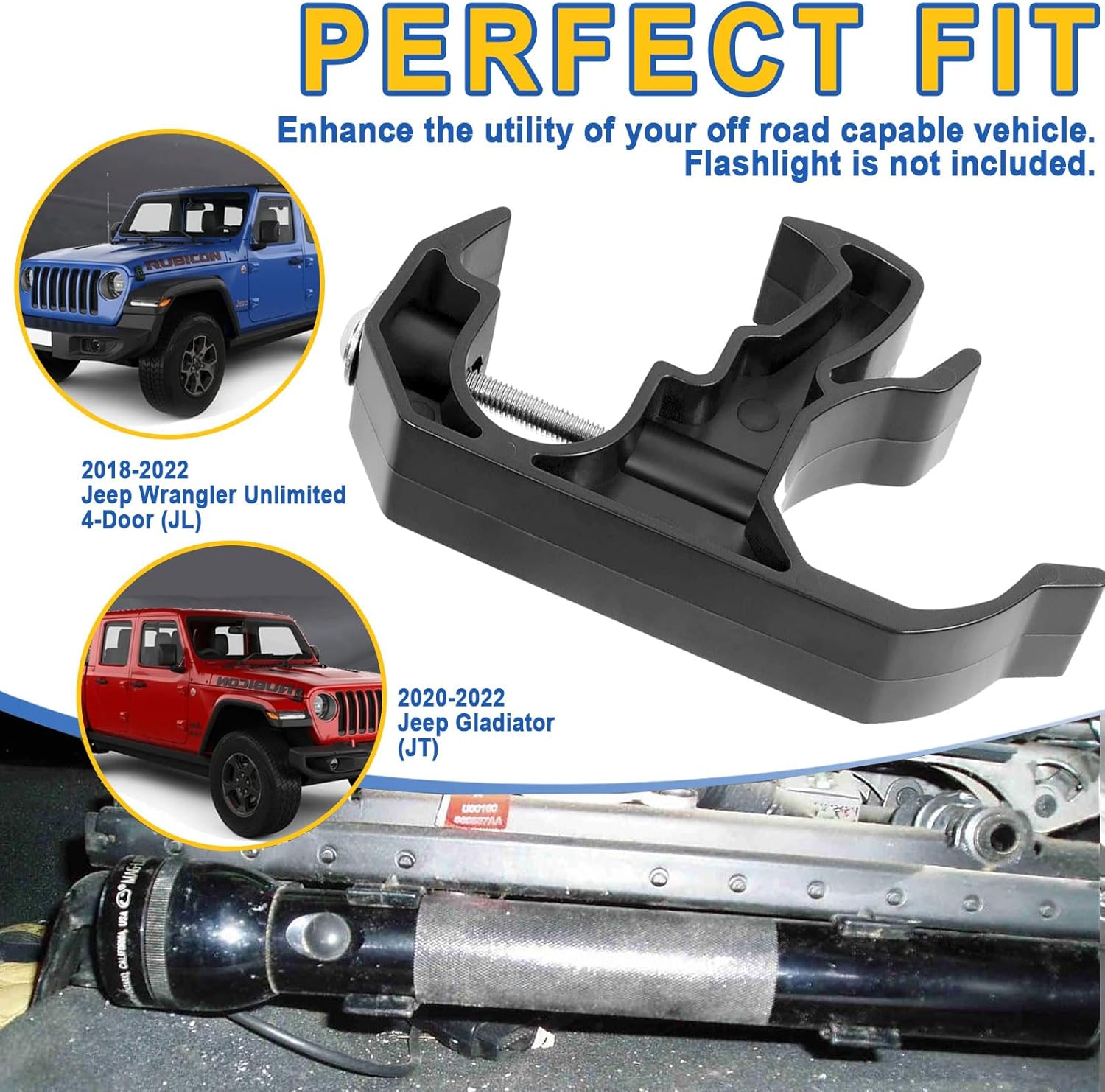 Flashlight Holder Bracket Mount Front Seat Holder fit for 2018-2022 Jeep Wrangler Unlimited 4-Door JL & 2020-2022 Jeep Gladiator JT(2 pack)