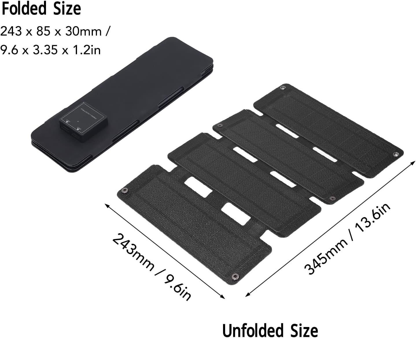 [HIGH EFFICIENCY SOLAR CHARGING] This foldable solar panel charger boasts a remarkable 20.5% conversion rate thanks to its premium polycrystalline silicon solar cells. It efficiently harnesses solar energy to provide power for your devices ensuring you stay connected even in remote locations. The intelligent voltage regulation ensures optimal charging for your smartphones tablets and other USB devices.[DUAL USB PORTS FOR FAST CHARGING] Equipped with two USB ports this solar charger allows you to charge multiple devices simultaneously. Whether you need to power up your smartphone laptop or tablet this portable charger delivers quick and reliable charging. The smart voltage adjustment ensures compatibility with a wide range of devices making it for outdoor adventures.[FOLDABLE AND PORTABLE DESIGN] Designed for convenience this solar panel charger features a compact and foldable design that easily fits into your backpack. The lightweight and space saving construction makes it ideal for camping hiking and travel. You can take it anywhere and enjoy uninterrupted power supply without the hassle of carrying bulky equipment.[IPX6 AND DURABLE] Built to withstand harsh outdoor conditions this solar charger has an IPX6 rating making it to water and dust. The high transmittance ETFE film and fabric enhance its durability ensuring long lasting performance. Whether you are in the rain or dusty terrain this charger will keep your devices powered up.[VERSATILE AND RELIABLE POWER SOURCE] This solar panel charger is a versatile solution for all your charging needs. Its robust construction and high efficiency make it a reliable power source for outdoor enthusiasts travelers and emergency preparedness. With its easy to use design and powerful performance you can count on this charger to keep your devices running wherever you go.Spec:Item Type: Foldable Solar Panel ChargerMaterial: Polycrystalline siliconOutput Voltage :5V Current