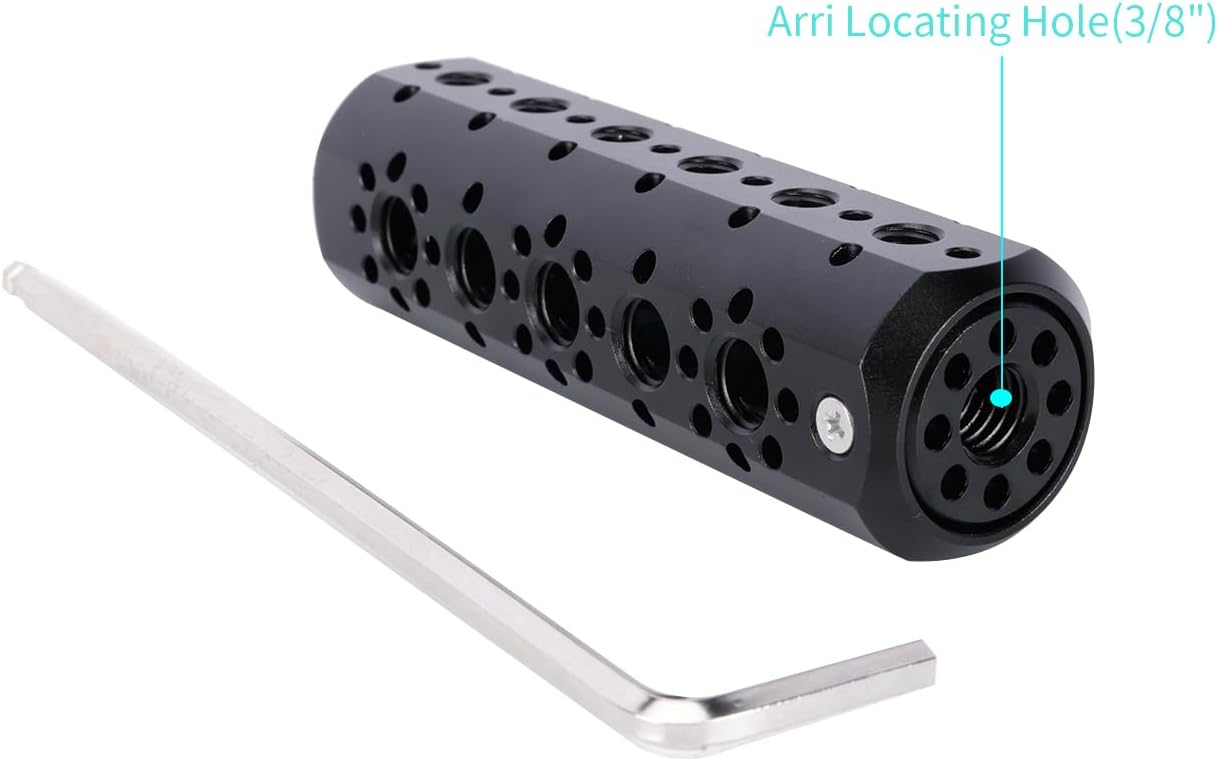 The Extension Plate Cheese Mounting Handle 600 is equipped with an enormous ARRI & 1/4'' locating holes all over the body. Easy to mount with built-in ARRI screw. Multi-purpose, can connect various camera accessories, such as cheese plate, DSLR cage, top handle, 15mm rail block (Optional Niceyrig 15mm Single Rod Clamp 552 / Niceyrig 15mm Dual Rod Clamp 568) for building camera cage rig, shoulder rig.Compatibility: Universal for camera accessories with ARRI locating holeWhat you get: 1 x Cheese mounting handle 1 x L wrenchHandle length: 105 mm Product Weight: 3 oz Process: Sandblasting + Black anodized, CNC Material: Aluminum alloy