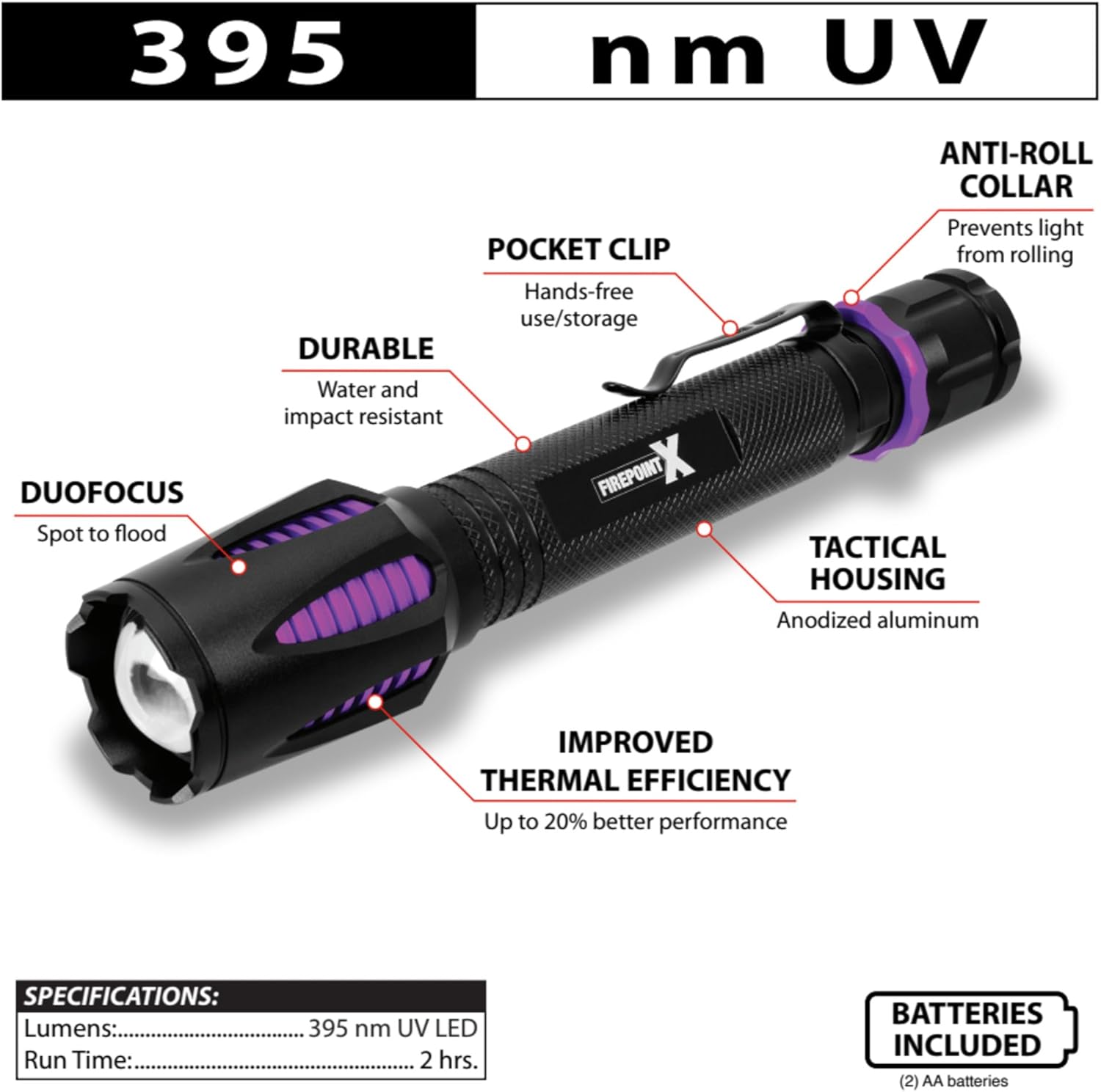 | Included Components | PT Power - Firepoint X 2 AA UV Flashlight (W2648) |