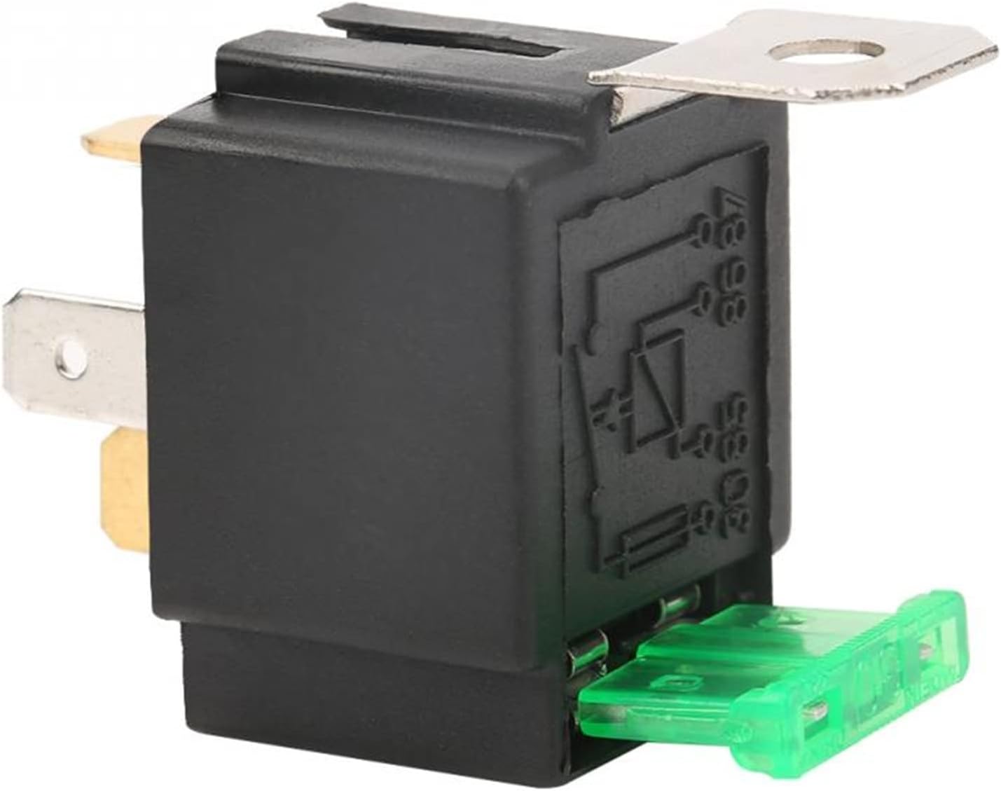 relayBlack 4-Pin DC 12V 30A Car Normally Open Contacts Fused Relay On/Off With Bracket Features:Adopt of premium plastic outer shell, excellent shock and vibration resistanceAutomotive relay with 4-pins and 30A blade fuse to protect the circuit.The relay features a metal mounting bracket and are suitable for automotive and lamp accessory applications.Comes with a metal bracket and 30A fuseAuto relay is convenience to a replacement of the brokenSpecification:Material:plasticContact: Normally OpenVoltage: DC 12VCurrent: 30APin number: 4Size: 3.3*2.5*4.8cm/1.3*1*1.9inWeight: Approx.30g/1.1ozPackage list:1 x Automotive Fused Relay