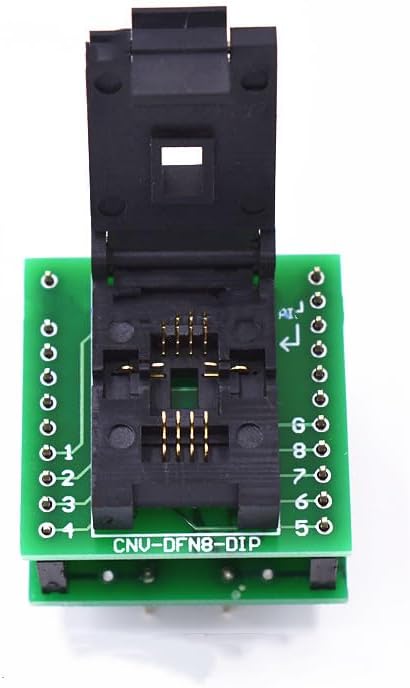 ANDK QFN8 DFN8 WSON8 Programming Socket Pin Pitch 1.27mm IC Body Size 6*8mm Clamshell Test Socket ZIF adapter Kelivn socketFeatures:a.Clamshell structure socket b.Adopting engineering material for socket structure,Strength is high ,lifetime is longc.Adopting import BeCu material for socket contactSpring ,thickening gold-plating surface ,impedance is small elasticity is goodd.For 1.27mm pitch packageMaterial & Performance: socket Body: PEI Contacts:Beryllium Copper Alloy Contact Plating:Gold over Nickel Operation Force:2.0KG min, the more PINs the greater force Contact Resistance:50m max Dielectric:700V AC for 1 minute Insulation Resistance:1,000M 500V DC Max Current Capacity : 1A Temperature Rating:-55 ~+175 Life Span 15,000 Times (Mechanical)