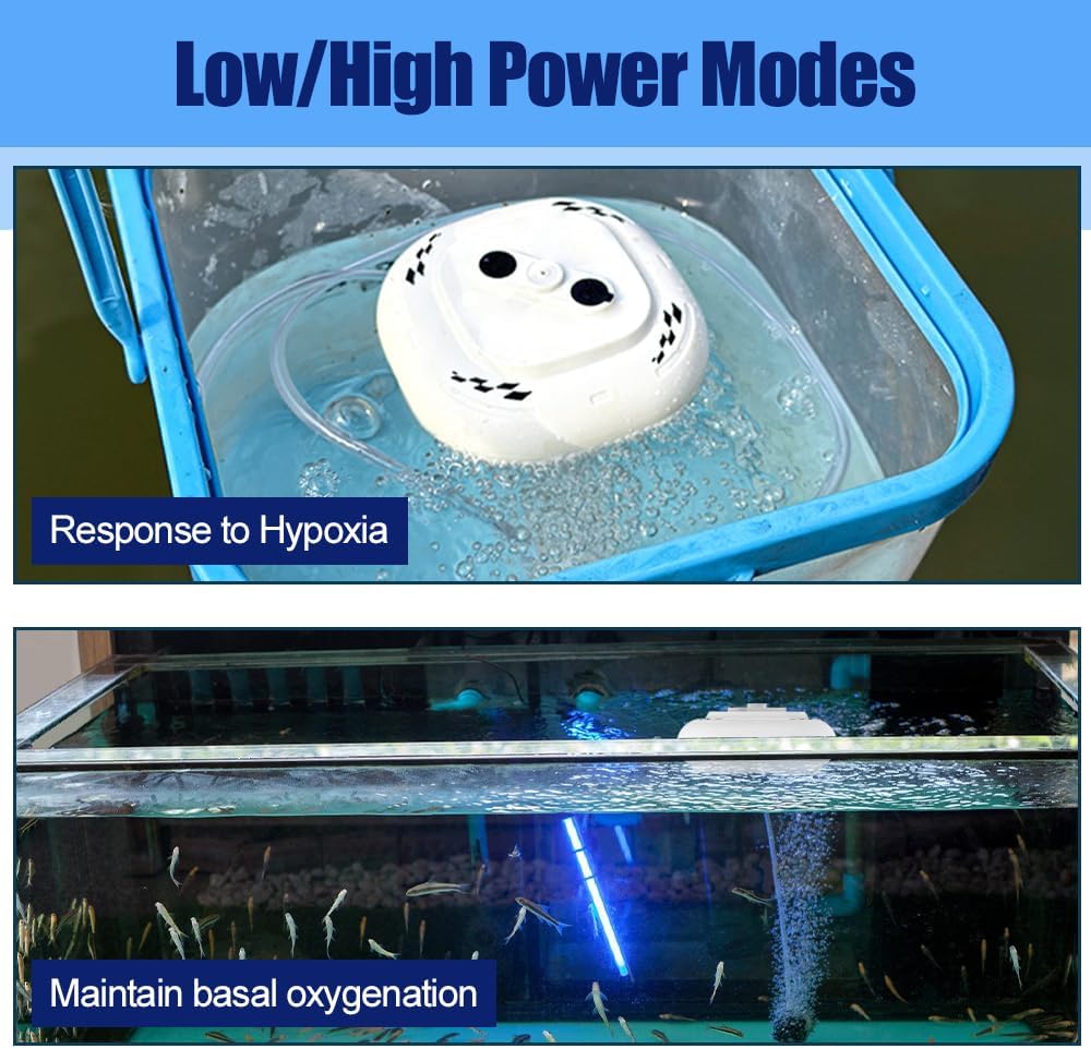 Features:1. Two Power Modes: This aerator features low and high power modes. Low mode provides energy-efficient, quiet work to maintain basic oxygen levels, while high mode delivers powerful aeration for oxygen emergencies, flexibly adapting to different scenarios.2. Low-decibel Running: The bait aerator utilizes a noise-reducing motor and optimized airflow design, running at under 40 decibels. It runs quietly at night without disturbing sleep, creating a peaceful environment for fishkeeping or relaxation.3. Floating Work: Automatically floats upon immersion, requiring no support for stable running. It releases fine, uniform bubblers to effectively boost dissolved oxygen levels in water, ideal for rapid aeration in still water environments.4. Long-Lasting Battery Life: Fully charged, it can run continuously for approximately 10 hours, meeting the daily oxygenation needs of home aquariums as well as extended use requirements for outdoor fishing and live fish transport.Specification:Material: ABSBattery: 3000mAhColors: White, Black, YellowDimensions: 11.8*4.5cm / 4.65*1.77inPacking List:1 * Aquarium Air Pump1 * USB Charging Cable1 * 1M Water HoseNotes: 1. Due to the difference between different monitors, the picture may not reflect the actual color of the item. 2. Please allow 1-2cm slight dimension difference due to different manual measurement.