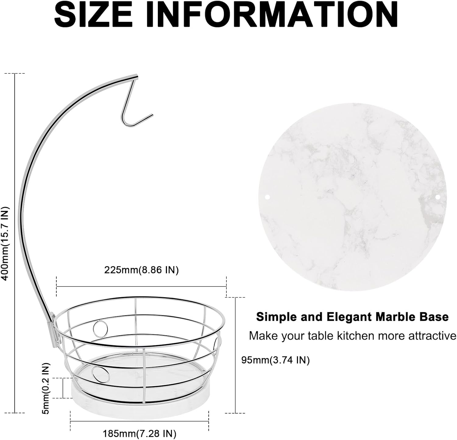 • BEAUTIFUL MARBLE BASE: Each marble base has an unique charming color and texture. Its elegant and stylish look makes the banana hanger with fruit basket more attractive. Heavy weighted design of marble base is stable to protect banana hanger from falling when take out bananas.