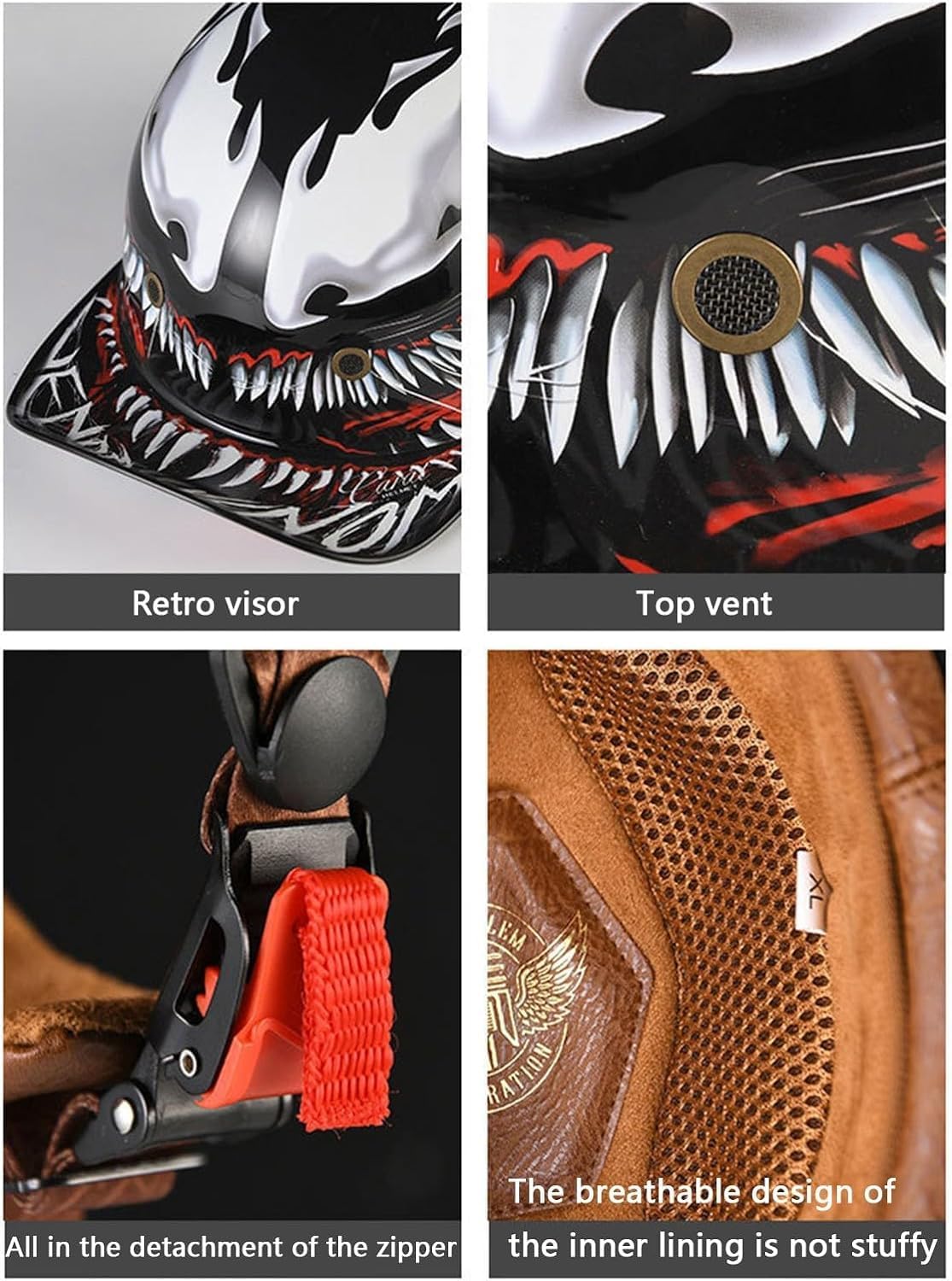 Product Description Would you like to have a cool summer helmet? YMKJGZS Try our motorcycle baseball cap helmet! 【Specifications】 Name: YMKJGZS Motorcycle half helmet Material: ABS Applicable gender: unisex Applicable season: Four seasons Features: Drop-resistant, breathable, comfortable, lightweight Scope of application: motorcycle / bicycle / scooter / electric vehicle and so on. 【Size】 M=57-58cm/22.4-22.8 inches L=59-60cm/23.2-23.6 inches XL=61-62cm/24.0-24.4 inches 2XL=63-64cm/24.8-25.2 inches 【Features】 High-strength ABS shell, lightweight and impact-resistant Comfortable breathable lining Lightweight design, light weight, safe and comfortable Adjustable buckles to meet different needs Fantastic festive birthday Christmas gifts for women and men Fashionable appearance, bring you a different experience Package includes: 1 x Helmet 1 x Random face towel Note: 1. Manual measurement, there may be slight error in size. 2. Due to different screen display, the color may be slightly different.